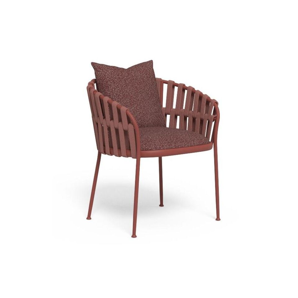 Elegant, comfortable and not obvious, the Frame dining armchair is the perfect meeting of all the elements that characterize the collection created by TALENTI. The slender and delicate aluminum structure meets the soft volumes of the backrest cushion and the interweaving of padded cords. Sensual and elegant, the Frame Dining Armchair is the ideal seat for furnishing your outdoor space.